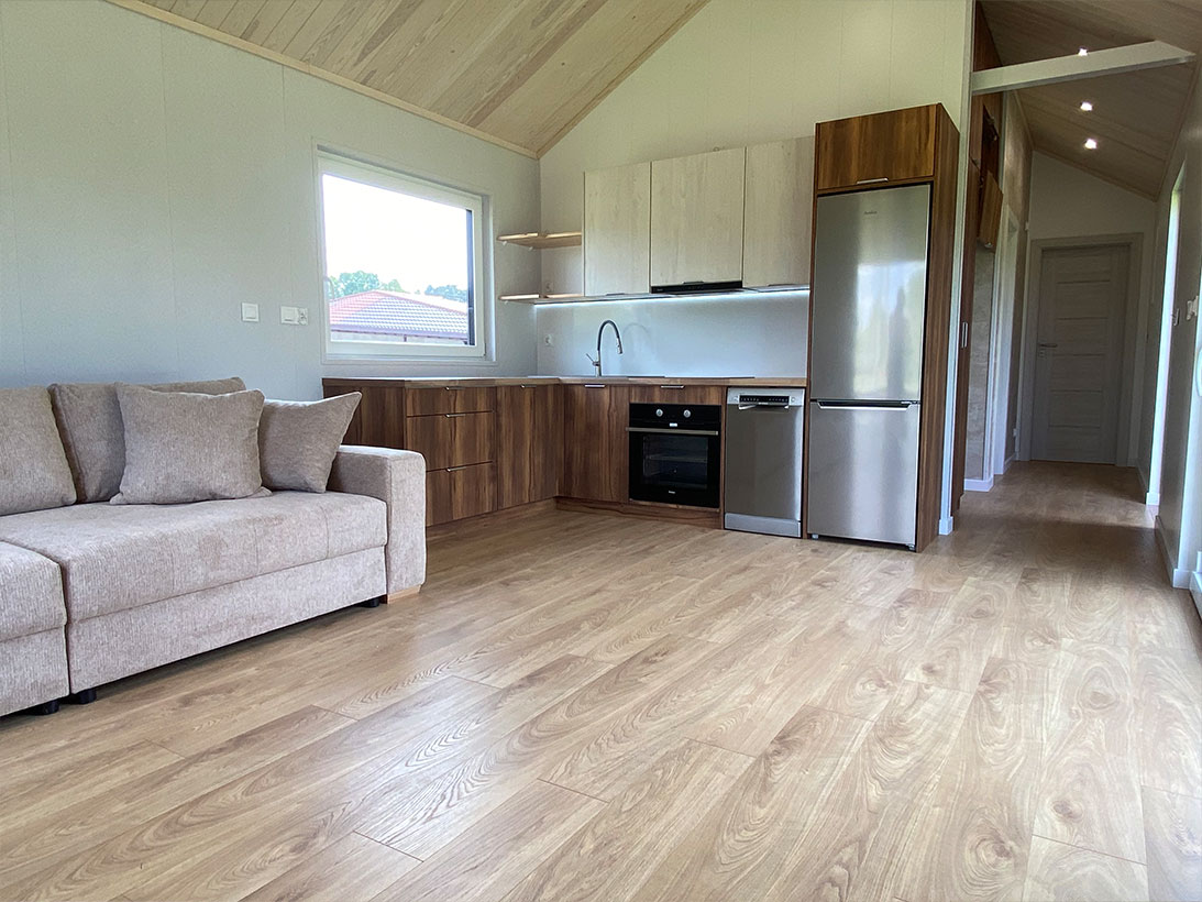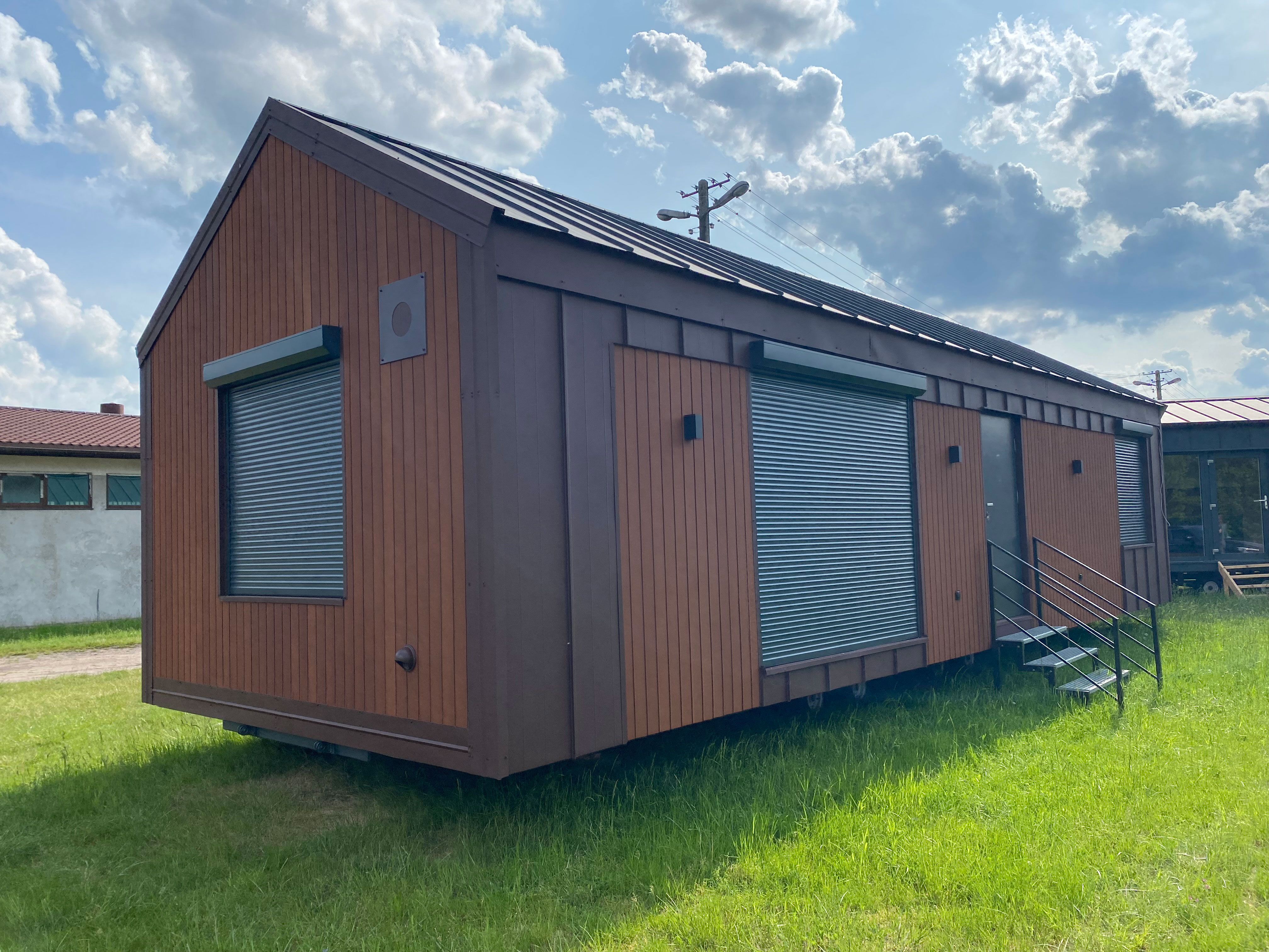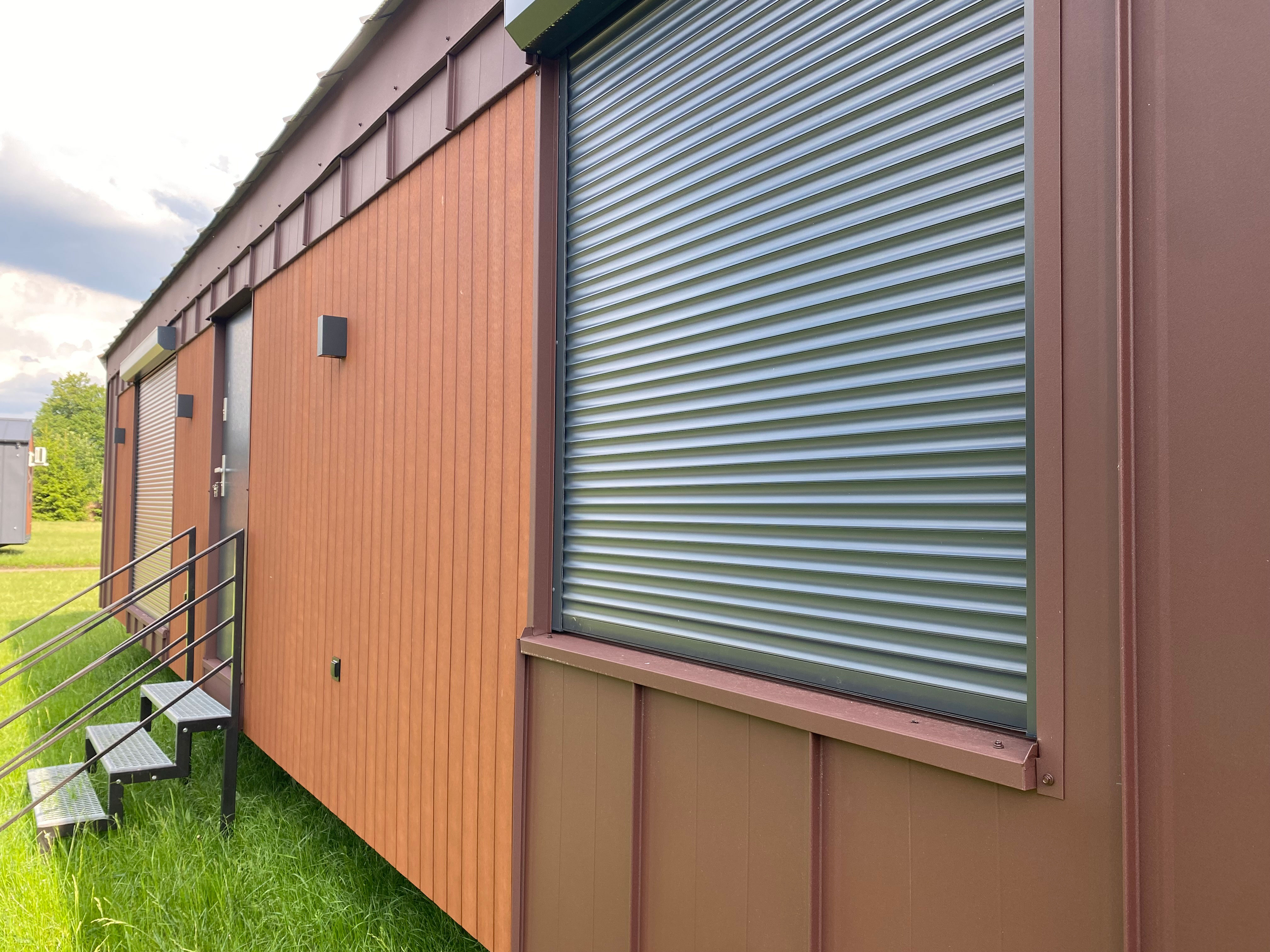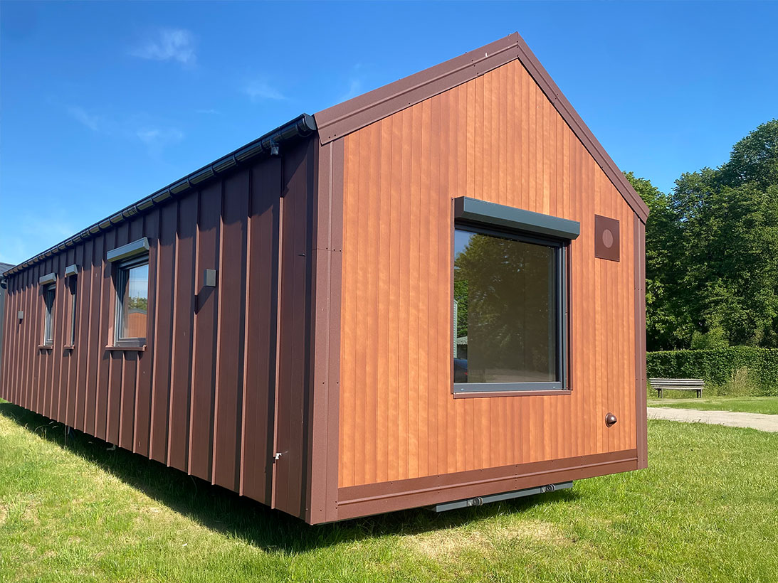 Die Fassade der Modelle der Premium-Serie besteht aus langlebigen Resysta-Verbundplatten und Stehfalzmetallplatten. Für die Innenausstattung werden ausschließlich hochwertige Materialien wie Vinylplatten, MDF-Platten und Naturholz verwendet.