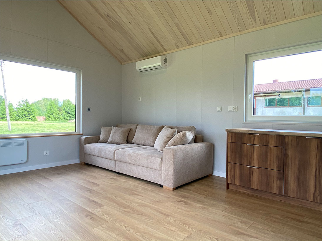 • Fußbodenheizung - elektrische Heizmatten, unabhängige Temperaturregelung in jedem Zimmer, WiFi-Modul (Möglichkeit der Fernsteuerung der Temperatur im Haus). Zusätzlicher elektrischer Heizkörper im Badezimmer.